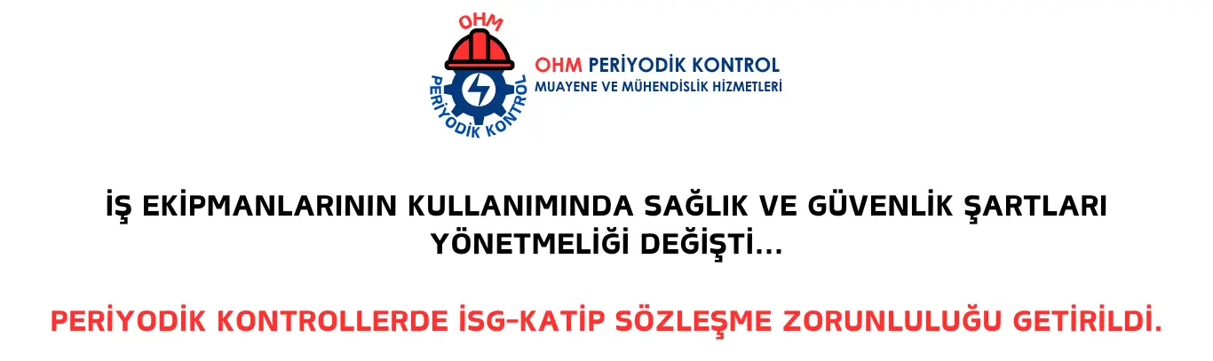 4 Şubat 2024 tarihli ve 32450 sayılı Resmi Gazete’de İş Ekipmanlarının Kullanımında Sağlık ve Güvenlik Şartları Yönetmeliğinde Değişiklik Yapılmasına Dair Yönetmelik 3.maddesi uyarınca işveren ile periyodik kontrol yapmaya yetkili kişiler arasında sözleşme imzalanması gerekliliği hüküm altına alınmıştır. Mezkur Yönetmelik 5.madde 8.fıkrası uyarınca İSG-KATİP üzerinden sözleşme olmaksızın periyodik kontrol raporu düzenlenemez, sözleşme olmaksızın düzenlenen raporlar geçersizdir ve bu hükme aykırı davranan periyodik kontrol yapmaya yetkili kişinin yetkisi altı ay süreyle askıya alınır.